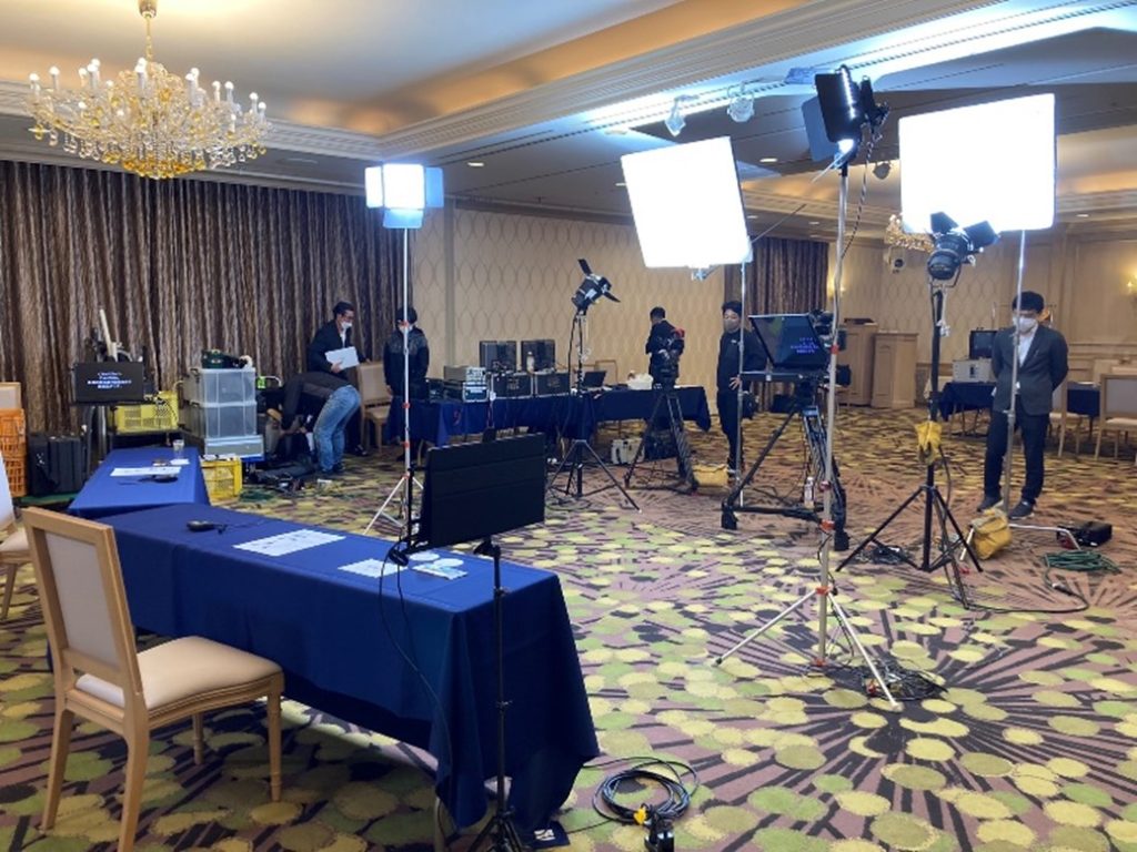 広さの次に重要になってくるのが、会場の静寂性です。ホテル会場の場合、隣接した宴会場で、同時刻にどのような用途の利用があるかを事前に確認します。パーティーなど、音の出るイベントがあると、まず収録になりません。また、クライアントの会議室の場合も同様で、結構となりの話し声が聞こえることがあります。