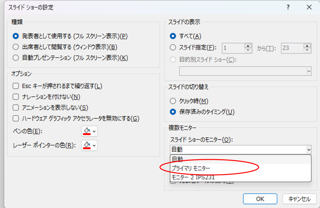 外部モニターがある場合は、いろいろ試す必要がありますので、練習セッション時にやっておきましょう。これに限らず臨機応変に対応できるかどうかですね。もちろん、不安のある方は私が対応しますのでご相談ください。